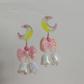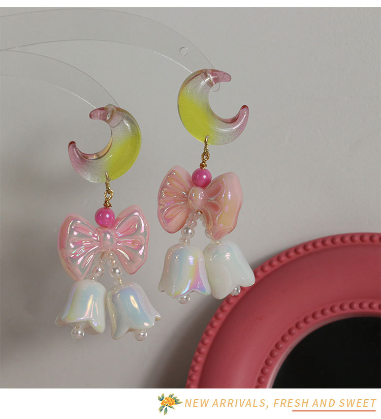 Gradient Moon Bow Blue Bell Vintage Earrings