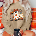 Khaki Cute Halloween Ghost Printed Drop Shoulder Baggy Sweatshirt