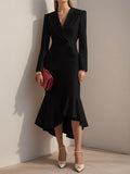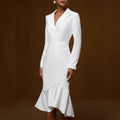 Solid Color Fashion Suit Collar Stitching Elegant Slim Fishtail Dress For Women