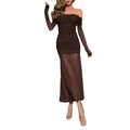 Women's Off-shoulder Pleated Mesh Elegant Pleated Dress
